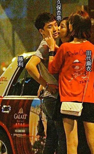 早前也和日籍模特久保杏奈及另一个田代麻衣,一起在路边搂搂抱抱,左右逢源。