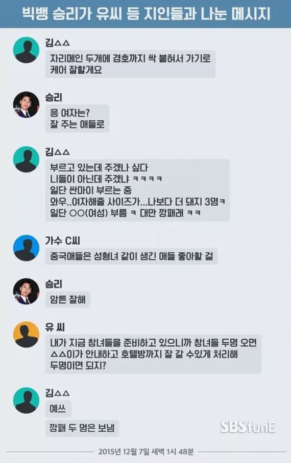 D社报道,李胜利跟Burning Sun的理事李文浩(就是XD被抓了的)找了很多娱乐场所的女生,要求漂亮、身材好。酒水机票食宿全免,“带上身体就可以”。