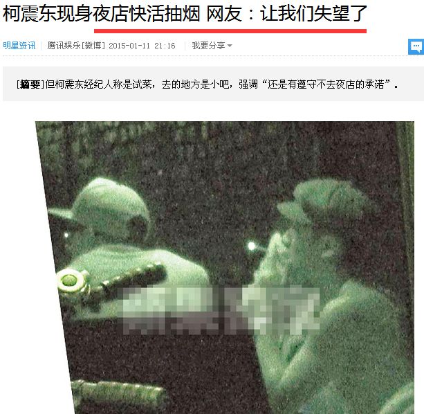 2015年的时候,柯震东因为XD说要洗心革面,结果又被拍到在夜店吞云吐雾,让网友大喊失望。