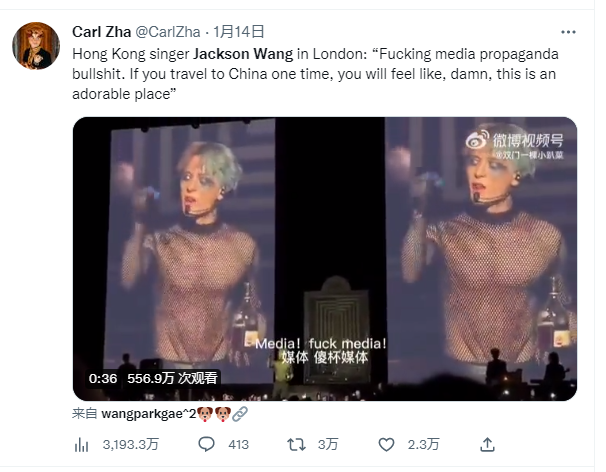 前几天,王嘉尔在伦敦演唱会上的一番话,引爆了全网。他用英文慷锵有力地说道:“I'm Jackson Wang from China”!“听着,实在有太多f**king的媒体对中国胡乱报道。”“你只要来一次中国,就会知道中国很棒……”。王嘉尔此番言论,所为何事?稍微对外网有过了解的观众就知道,国外媒体对中国新闻断章取义以及偏向性的报道,是常有的事。最出名的,就是BBC拍摄中国时的阴间滤镜和外媒特意为黑而黑的假新闻。王嘉尔这段视频被上传到外网后,瞬间登上了推特趋势榜。他怒怼外媒为祖国正名的片段,不但引起了外国网友的讨论;还登上了微博热搜,一时间全网沸腾。无论是粉丝还是路人都在说:王嘉尔这次,太tm帅了。不过出人意料的是,部分网友的关注点却在王嘉尔的透视装上。他们觉得王嘉尔的造型出位,另类。但还是有明白的网友出来说话:“他在为祖国正名,你们却只关注他的衣服,评价一个人应该在乎他说了什么,而不是穿了什么。”小IN并不是王嘉尔的粉丝,也是经过这次事件才知道,王嘉尔在IG粉丝数已经突破3000万。在所有华人明星中,他是IG粉丝最高的。明星的IG粉丝数量,直接代表着其在海外的影响力和受欢迎程度。当一个中国的艺人在国际舞台上有足够影响力的时候,他们在某种程度上,也是外界窥探中国的一个窗口。从在韩国出道开始,王嘉尔就无时无刻不在告诉身边的所有人,自己是一名中国人。在海外被误以为是韩国人、粉丝用韩语跟他打招呼的时候,他都会礼貌地回应:“I am Chinese!”王嘉尔所在的GOT7男团只有他一个中国籍成员。在团队的巡演中,他看到粉丝递过来的国旗,会惊喜地接过来自豪的向全场观众展示,然后对着五星红旗深情一拥。