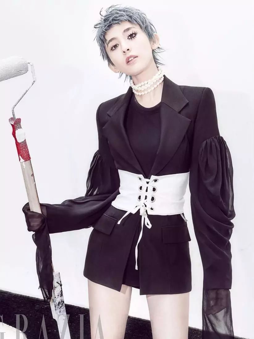 杨幂的奶奶灰短发,不算帅气,感觉更像是cos二次元漫画美少女。