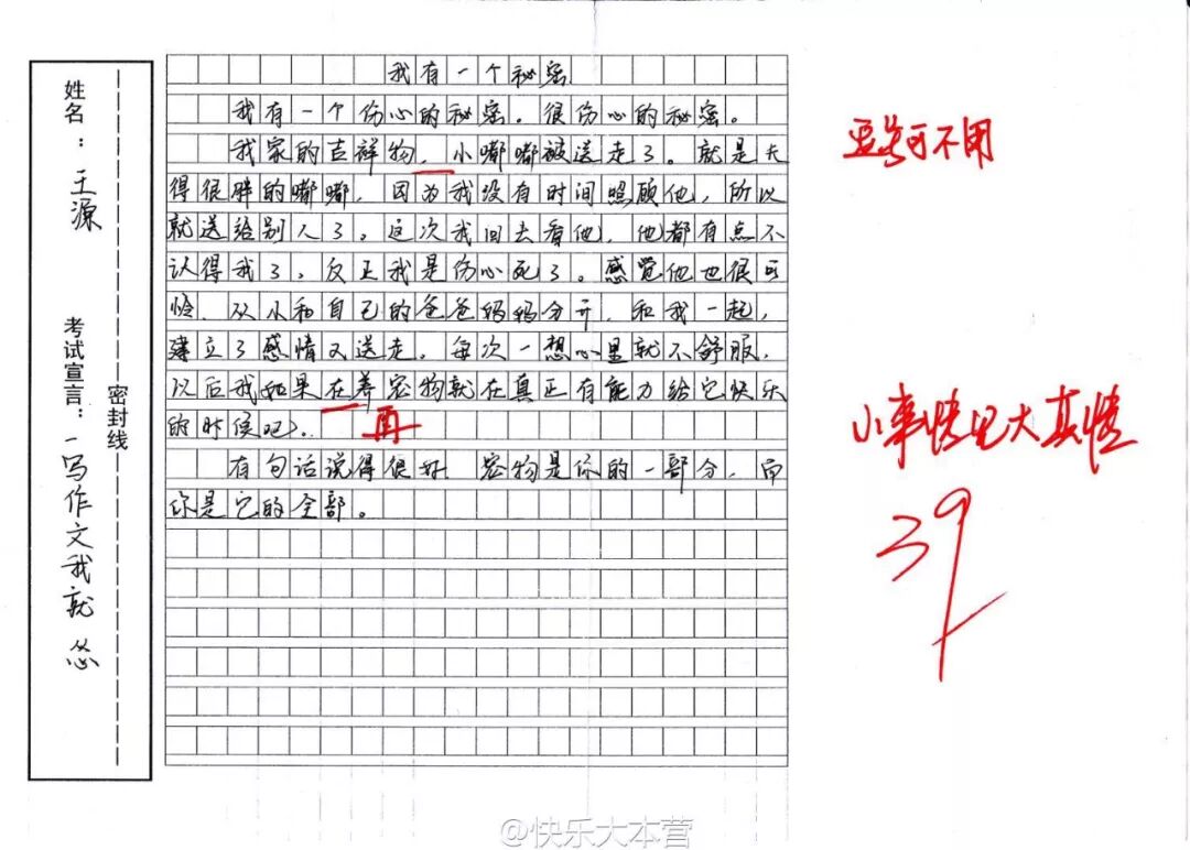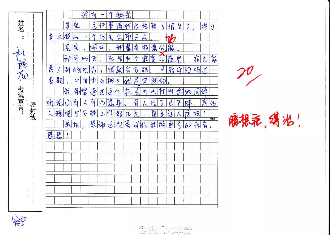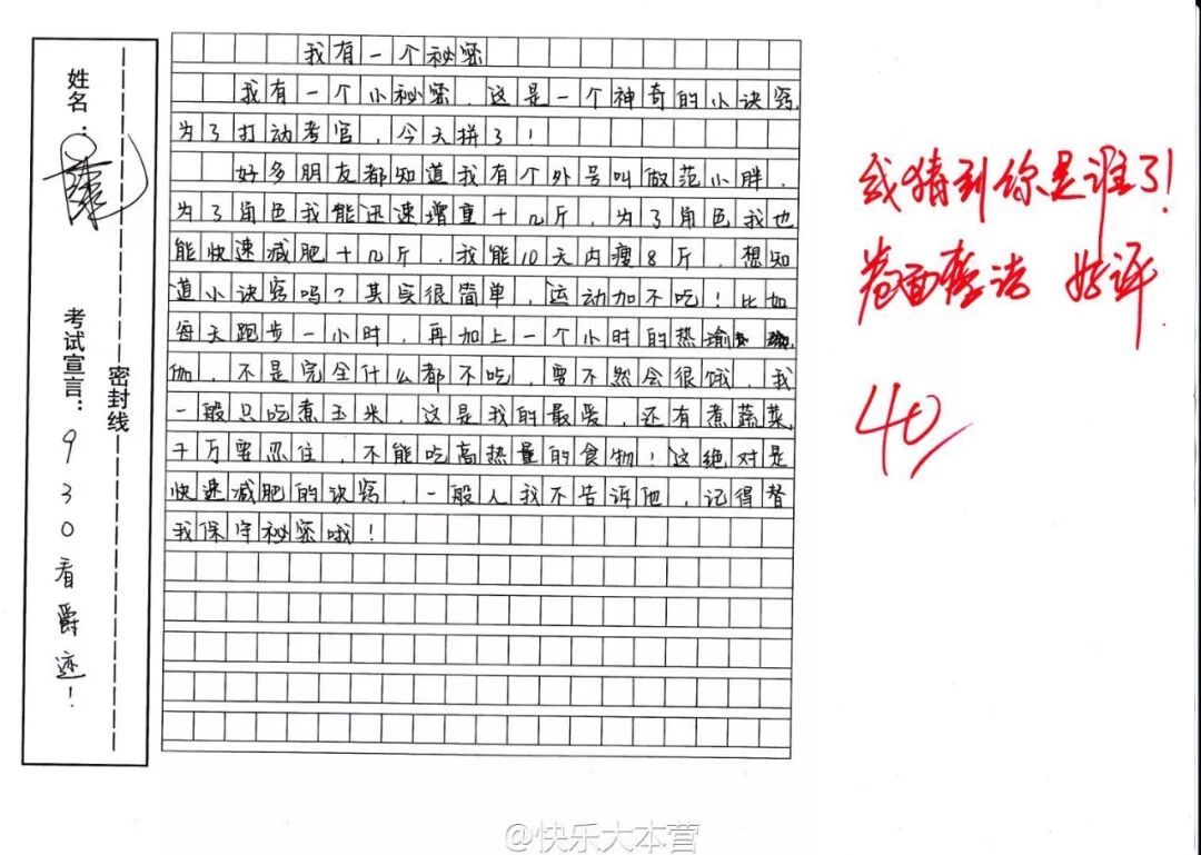 范冰冰的手写作文拿到了满分,说实话,在学生时代,像这样字迹工整,卷面整洁的作文应该也是能拿高分的吧。旁边的红色批语是何炅写的,作为大学老师,何炅也是写的一手好字。