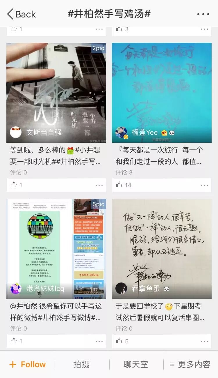 字写得好是井柏然身上的一个很重要的标签。他参加的综艺节目主打的是“井柏然手写心灵鸡汤”的主题。