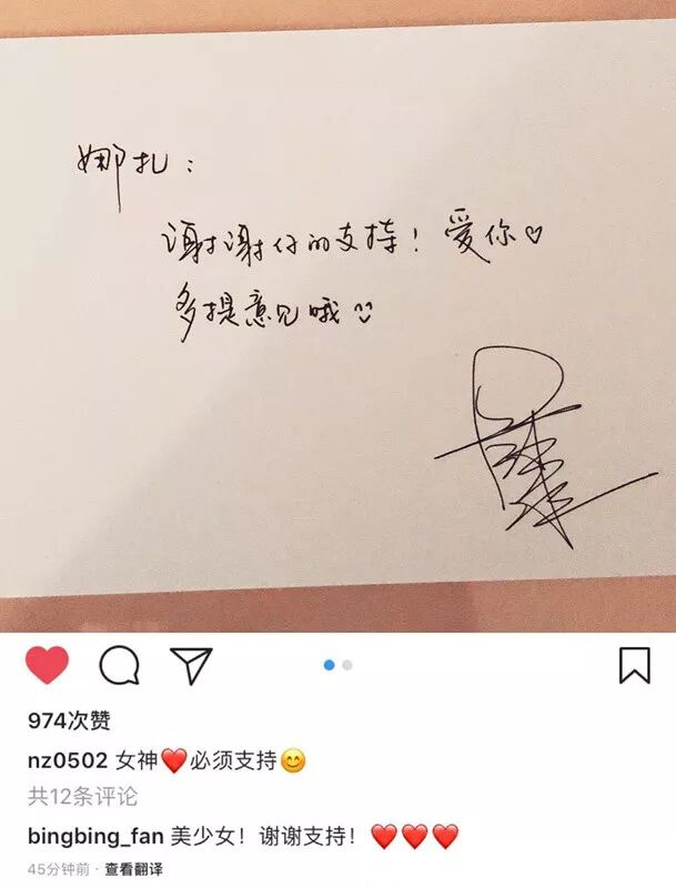 贴心的范冰冰还准备了手写卡片,感谢娜扎的支持,希望她多提意见,范冰冰对自创的品牌真的是下了一番心思。