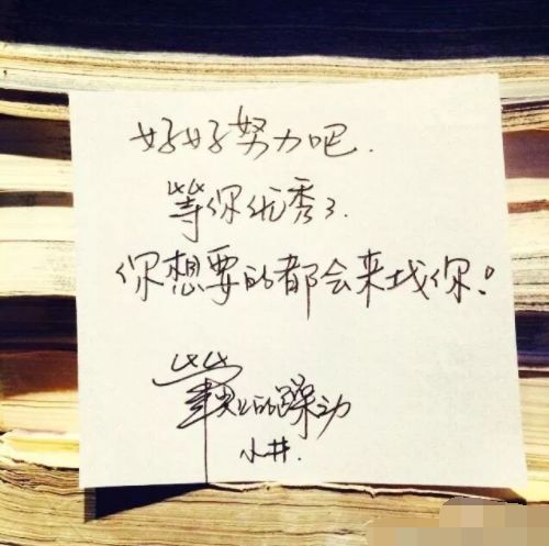 井柏然的字不是书法意义上的好看,他的字很小清新,很自然,看起来很舒服,再配上鸡汤文,有他自己的独特风格。