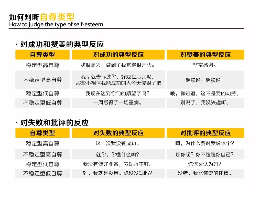 而高自尊的人恰恰相反,她们的想法往往是: