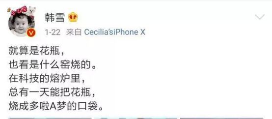 韩雪的回复让人惊艳:花瓶不也看什么窑烧的吗?真材实料的花瓶那是艺术品!