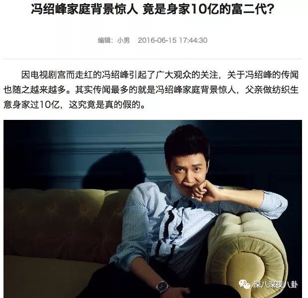 虽然后面也有人说他打肿脸充胖子,不过冯绍峰还真带点儿公子哥儿的那个痞范儿
