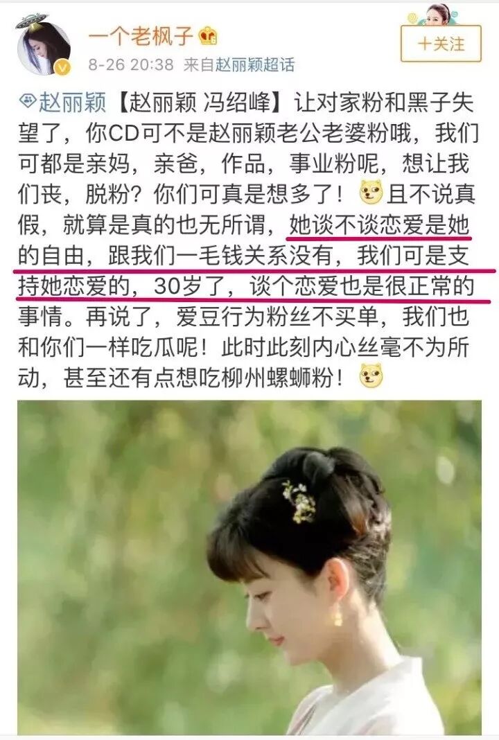 这担心还真不是空穴来风。虽然大多数赵丽颖粉丝都是作品粉,事业粉,恋爱神马的并不会造成大型脱粉现场