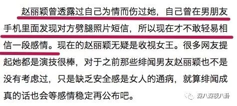 然后就没然后了。但之前赵丽颖也说过自己没安全感,而且跟之前的情伤有关