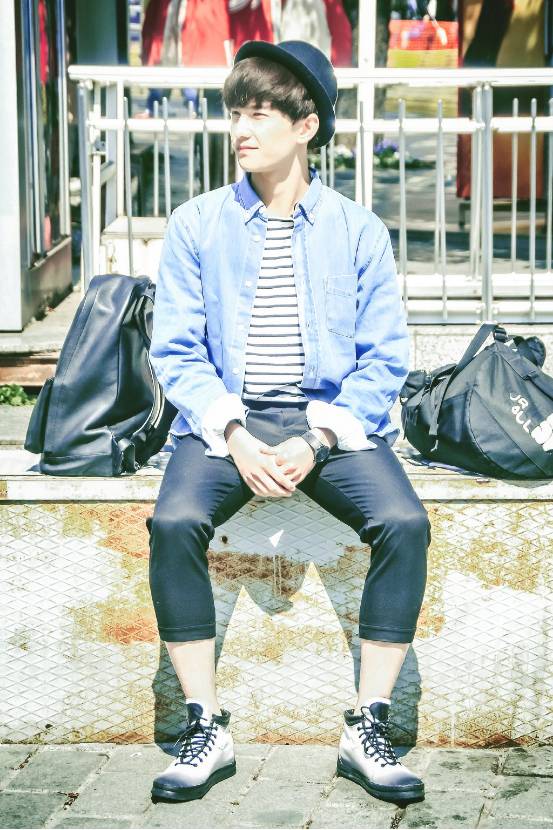 牛仔外套加马丁靴,七分裤还露出了鲜肉小白腿,总体上的打扮还是外出休闲风。但是加一个小礼帽,绝对街头文艺爵士范儿,呼之欲出!
