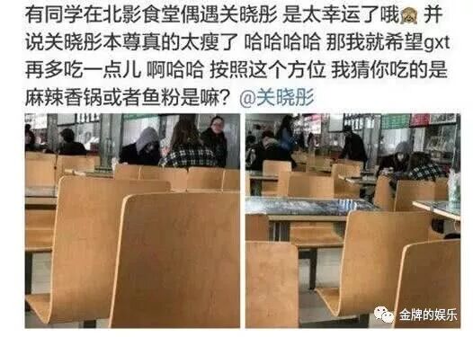 另外一次是在北影里和同学们一起上公开课。除此之外,关晓彤现身北影食堂的次数无疑是最多的了。