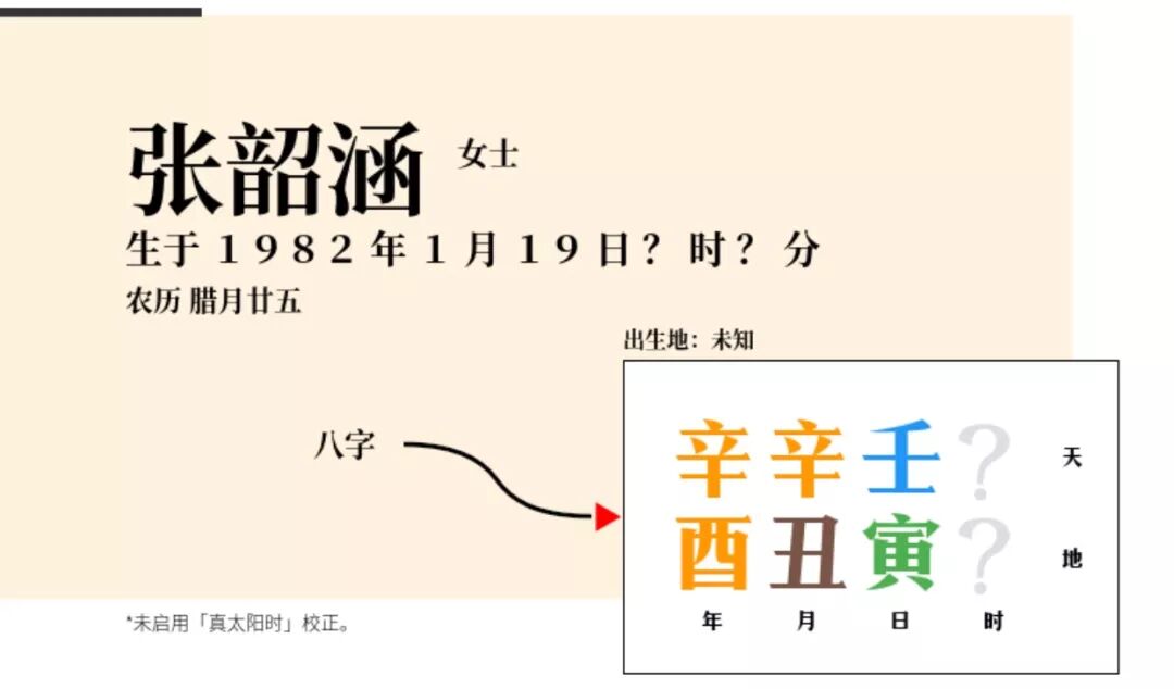 但她的「寅」亦犯元辰、劫煞。前者容易犯糊涂,后者容易被黑、被劫夺。八字之中,常常一个字上既有吉神、也有凶煞,就像人的生活既有好的一面,也有坏的一面。尤其张韶涵的「寅」还犯了更严重的「官符」,与元辰、劫煞相并,容易被卷入官讼、是非。