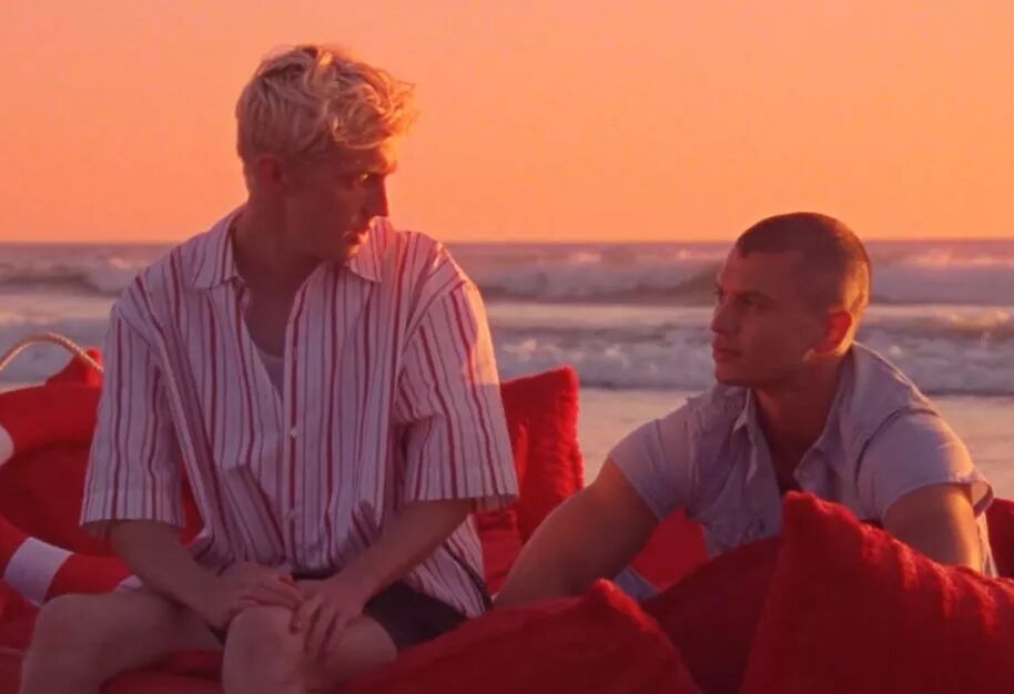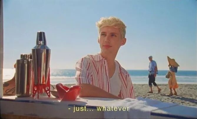 MV的主要剧情是: 金发美男孩Troye在海滩的海边饮料吧遇到了肌肉男孩,两人一见钟情,一段海滩情缘出现了!