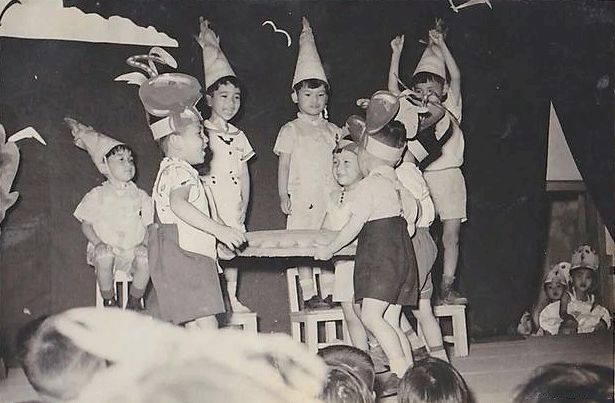 ▲ 罗大佑(后排中间)幼儿园游艺会演出蚂蚁搬饼干。