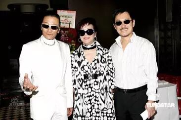 粉色外套,粉色衬衫,衬衫的大尖领子搭在外套外面,白裤白鞋白色长筒袜,配上那副标志性黑色墨镜,谢贤甫一出现,仿佛来到八十年代的港片拍摄现场。谢贤是属于八十年代的,大尖领,爱扮靓,永远的绅士派。