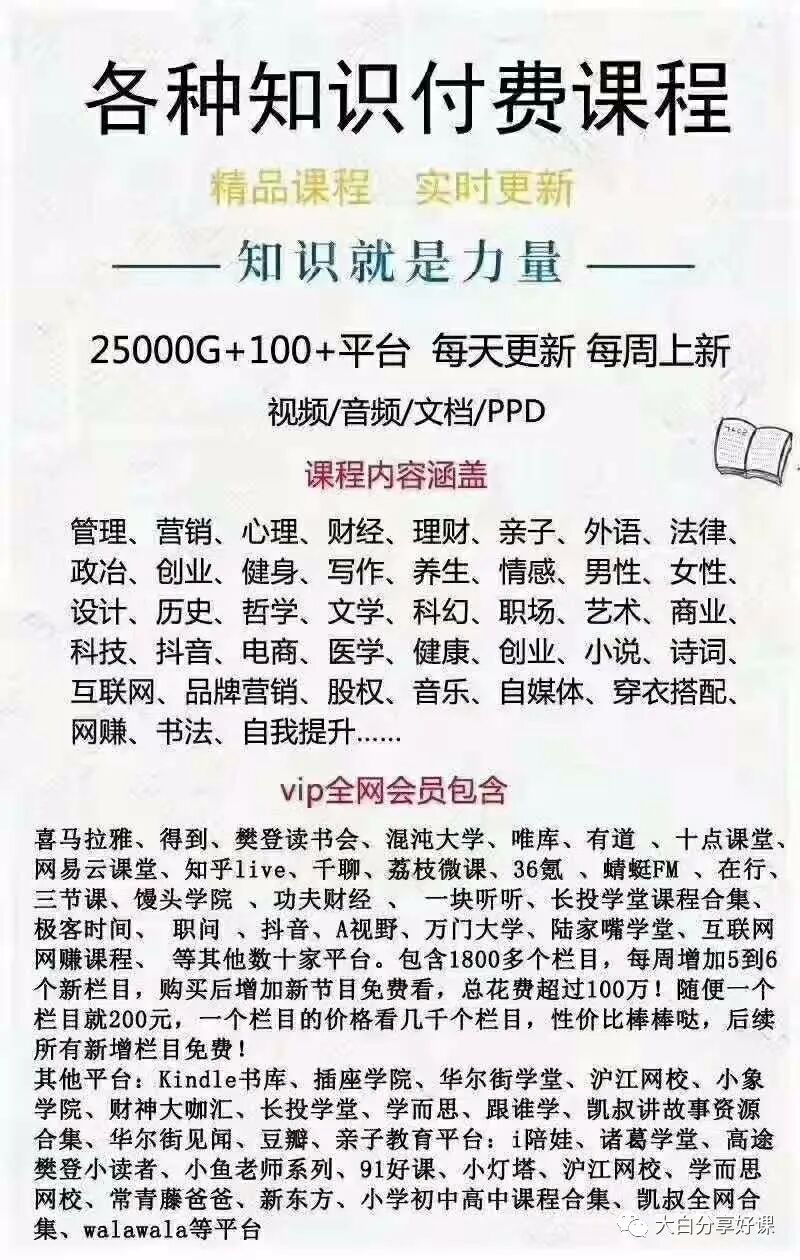 每周更新100多门课程,保持每日更新!有需要的朋友,加我微信:st562213