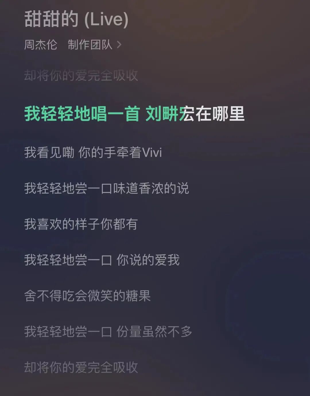 2007年,周杰伦还在演唱会上,将《甜甜的》结尾改编成“我轻轻地唱一首刘畊宏在哪里?我看见嘞你的手牵着Vivi”,送给当时即将新婚的刘畊宏~