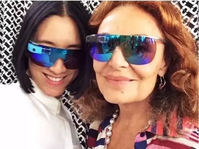 有些设计师眼光可不局限在手腕那几平方厘米的地儿,Diane Von Furstenberg早在2013年春夏的秀场就让模特带着Google Glass走秀了。之后又在2014年6月和Google Glass合作,推出了几款限量的镜框,包括光学眼镜的和墨镜。