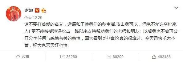 由此引发了吃瓜群众对卓伟的不满,接着谢娜就在微博上回应了,并且声明以后都不会再发有关感情的事了。