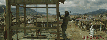 回来跟导演开会建议改方案为实拍加视效加工,这样周期,成本和真实度都有所提升。沟通后决定这么干。很快我再返回上海先找了十几处类似的建筑群。特别幸运的是在杨浦区我们找到了几处很大的拆迁中的建筑群,俯瞰很像战后的场景。