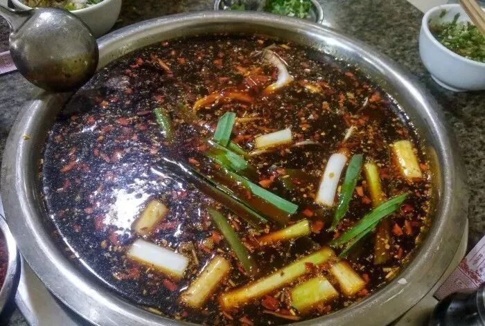 典型的成都苍蝇馆子,藏在一个像是七八十年代的砖房小区里,环境相当的怀旧了。矮桌子、矮板凳,在这吃着火锅很有一番市井气的感觉~