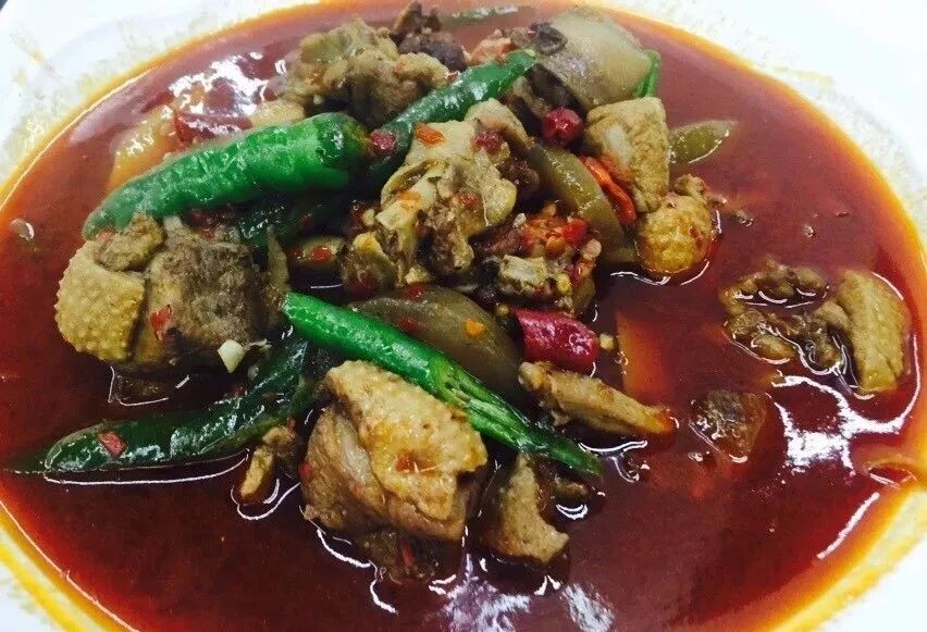 除此之外,还有鸡肉和排骨,都是先炸过再下锅煮,可以半斤、一斤起点。锅底很香而且越煮越辣,吃到最后好不畅快~
