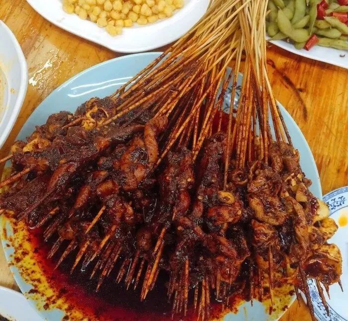 作为招牌菜之一的麻辣串串,全是荤没得素,并以内脏为主,选好后在秘制的麻辣汤底里冒一下,又麻又辣,特别入味。这个天气,再来上几瓶啤酒,巴适惨咯~