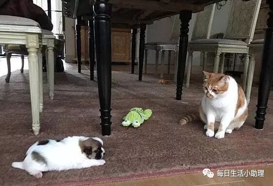 张静初还养了猫咪和狗狗,且看上去另个小可爱相处得很和谐,趴在地毯上一派悠闲的模样,猫咪和狗狗的世界真是一片岁月静好啊。