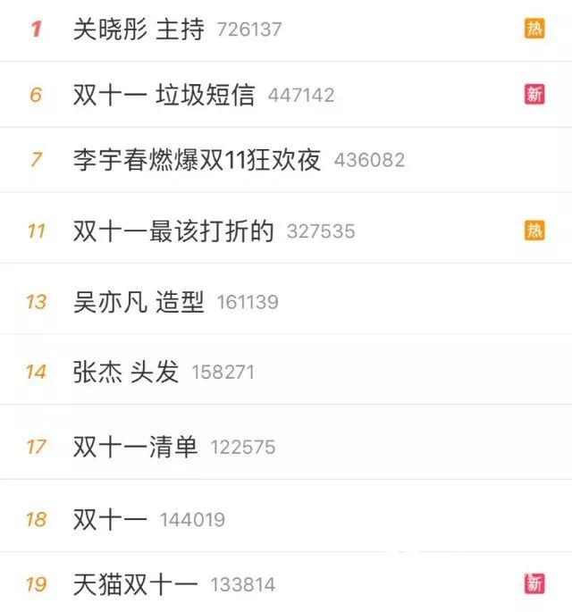 今年关注度有多高呢?差不多一个节目上一个热搜,等节目完了,热搜榜上几乎关于双11这次晚会的。