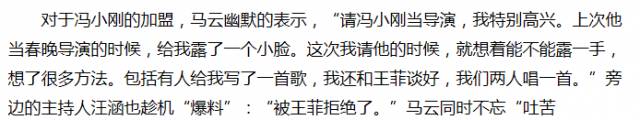 对了,就是那次晚会,马爸爸说想和王菲合唱被拒,没想到不过三年就愿望成真了(微笑脸)。