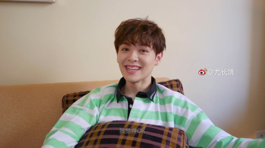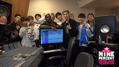 从录音室出来,等待前往宿舍的时候,帅气的九位少年也是很欢乐了!