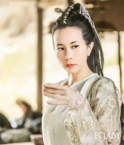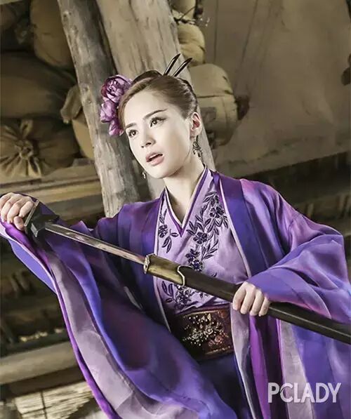 阿娇演绎风情万种的霸气春十三娘,剧照中阿娇身着一身紫衣,但这头上的两朵大紫花真是让人醉了,妆发也是略显老气,本身气场不足的阿娇,造型又不给力,这该怎么Hold住春十三娘这个角色呀!