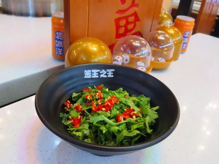 芹菜牛肉虽然算不上店里的爆款,但也是拥有众多偏爱它的吃货。码了料的牛肉中间包裹着香菜,浓厚的牛油底料慢慢渗透入牛肉中,高温作用下芹菜也迸发出自身的香味,在油碟中裹一转,入口之爽。