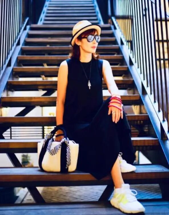 张敏可是从美人云集的港圈黄金时代脱颖而出的,如今年过半百的张敏仍旧是同龄女人的穿搭模板。私下里的张敏穿搭造型更是随意,一袭黑色无袖连衣裙搭配小白鞋,黑白配的经典组合优雅又不失高贵感,这类简约风的穿搭就很适合50+的成熟女性,好驾驭的同时又不失时髦感。