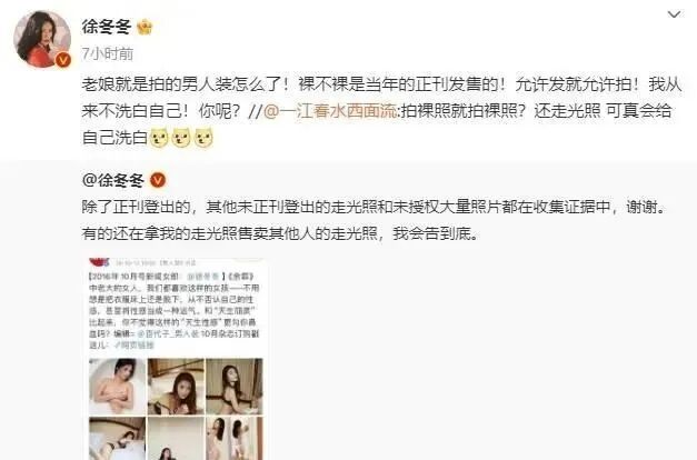 徐冬冬在社交媒体上表示,这些照片是在特定情境下自愿拍摄的,但从未授权任何第三方发布或传播。