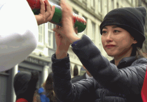 ▲因为要保持朱珠美丽的形象,主动提出自己去当接帽子的人。
