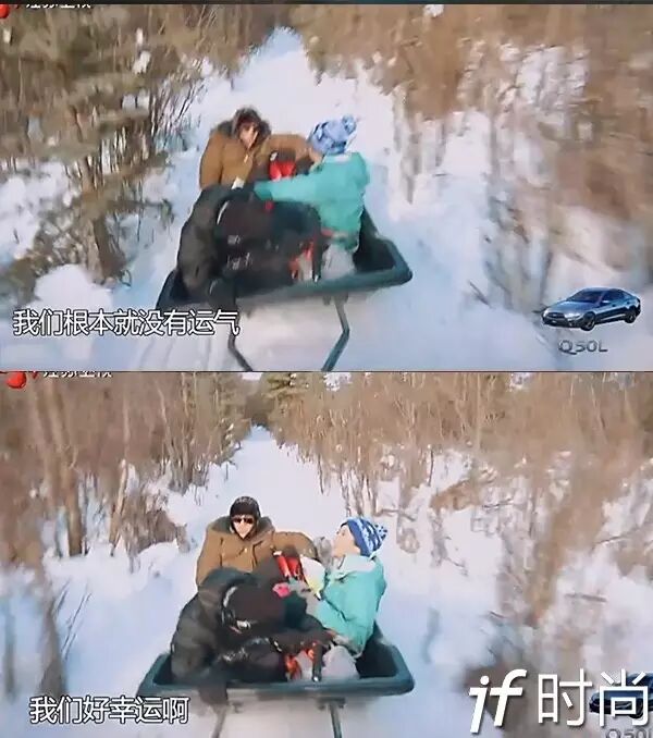 在阿拉斯加的第一个任务砸冰块找任务卡的游戏里,是真的因为运气太差,第二次搭档的两人又被远远甩在最后一名,一看两人反应对比就知道,这次相遇还是不美丽!