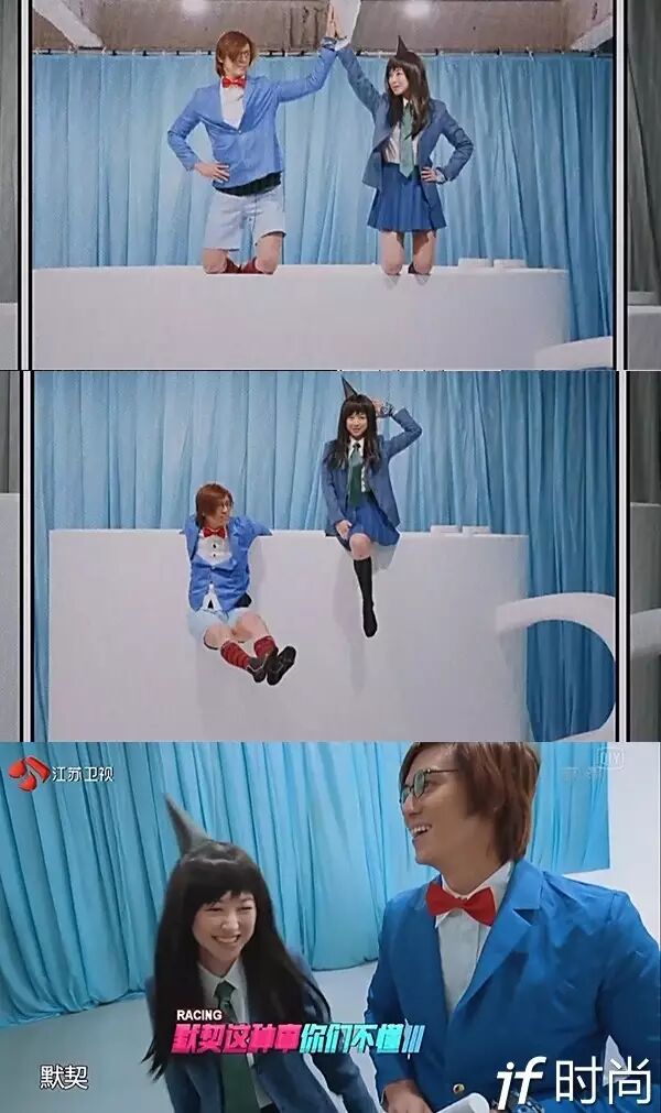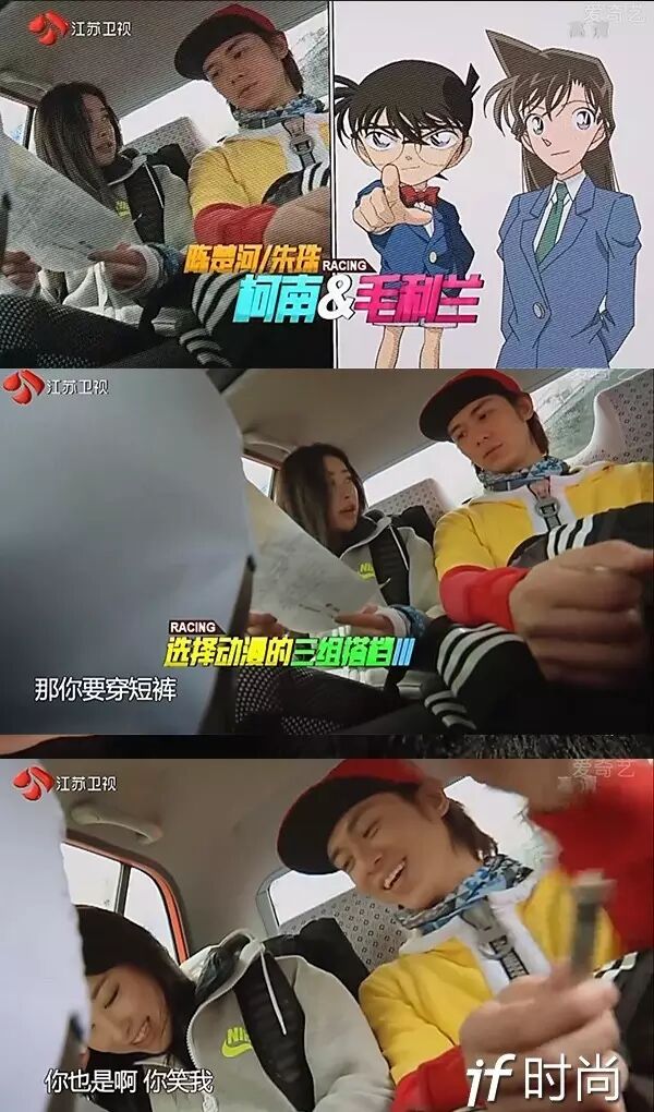 ▲在三组同时比赛中第一个胜出,对手问过关秘诀时两人还羞涩地说“默契”!(陈楚河朱珠版“柯南和小兰”同框看起来也很合啊。)