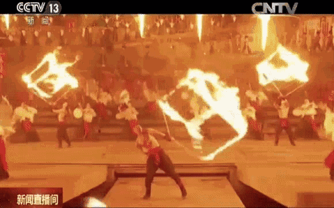 在凉山分会场现场,56个直径为2米的民族文化柱群燃烧起熊熊火焰,3300名演员围绕着巨大的火堆,男孩们点燃火把,女孩们转动黄伞。在会场内单手舞动“火立方”的小伙子,也给观众留下了深刻的印象。这一片“火海”的景象似乎在向观众传递着红红火火的新年祝福。