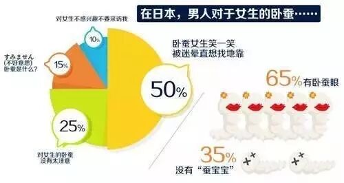 “卧蚕美女”是指眼睛下面有像蚕宝宝的东西,长这个东西的人一般都很美,所以叫卧蚕美女。日本人所说的“泪袋”就是“卧蚕”,日本人认为,有了卧蚕,可以让女生看起来更加楚楚可怜,让面容看起来更加饱满柔和。