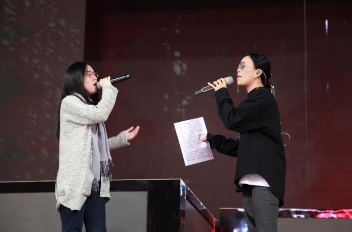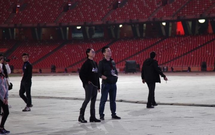 (总决赛前一天,那英与总导演在鸟巢彩排现场)