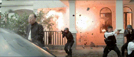 《战狼》这场爆破戏被炸出来的板子划破了腿也纹丝不动,这是老戏骨的专业精神