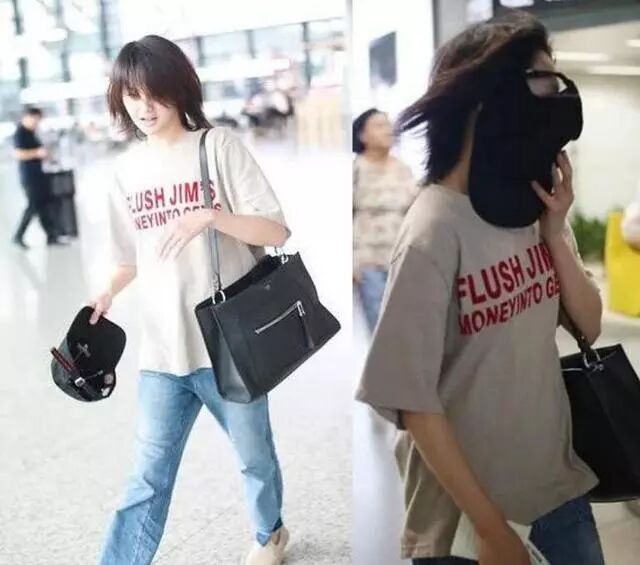 比如这种走机场,别人尽可能得妖艳,她随便套个衣服就去了,不戴口罩不戴墨镜,反正怎么舒服怎么来。