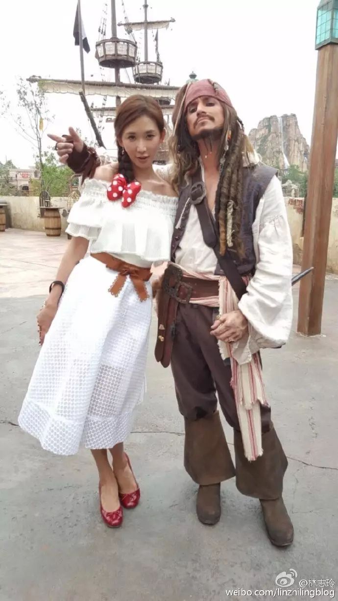 志玲姐姐玩得很嗨,还和杰克船长合照: