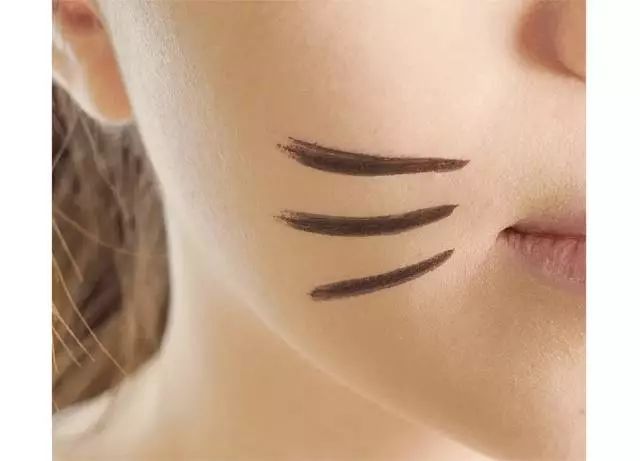 在手上涂抹了防水的粉底、眼线、唇膏和眼影