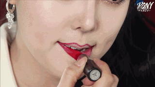 唇妆: 范冰冰的嘴角是微笑上扬的,所以我们先用眼影作为阴影打造出上扬嘴角。 然后用红色唇线笔勾画出嘴唇轮廓,然后用正红色唇膏涂满唇膏,细节处用唇刷做调整。 最后可以再涂一层橘色唇膏,让唇妆层次感更强,也更加自然。涂上唇彩,更加闪耀。