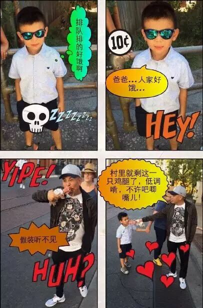 早前,演员刘涛更新微博,晒出儿子和老公的一组趣味拼图,并配文写道“爹吃肉,儿子只能啃骨头”。照片中,刘涛的儿子戴着炫酷的太阳镜,身穿白色短袖衬衫,一只手插进裤子口袋的他一副“霸道小总裁”的感觉。而刘涛的老公王珂戴着一顶棒球帽,打扮的很休闲,手拿一大块肉,一边走一边吃,样子十分搞笑。