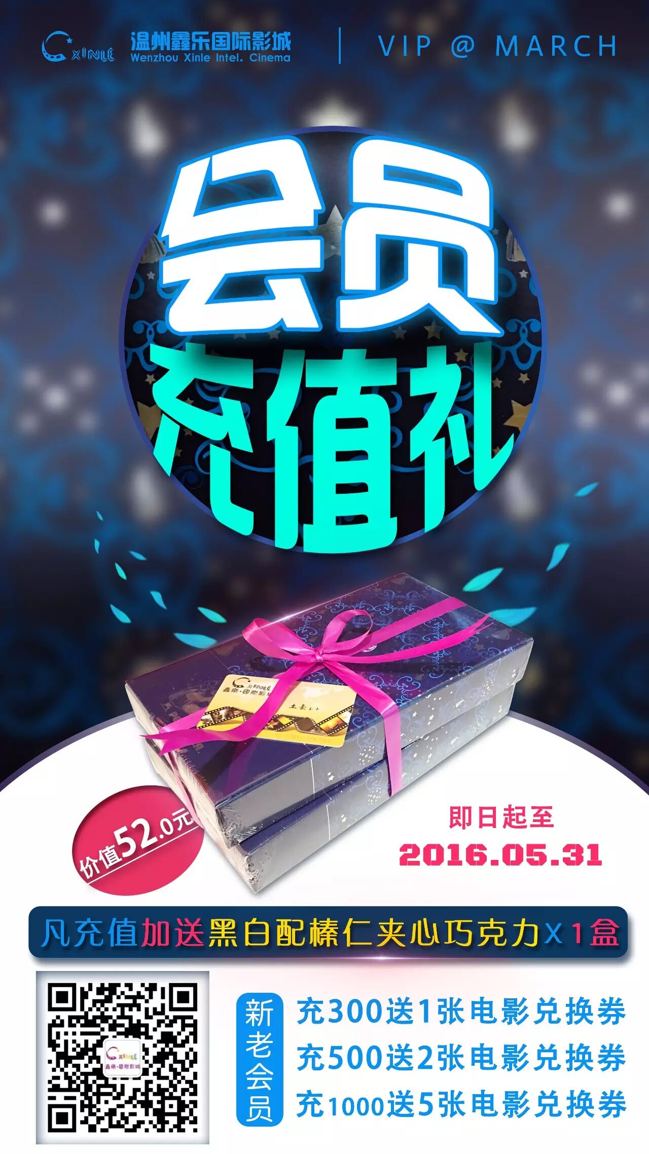 现在来鑫乐办理会员或充值除了送电影票外