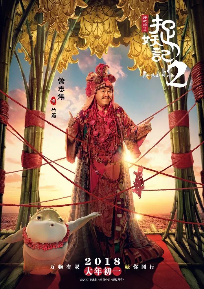吴君如和曾志伟这对第一部中便备受喜爱的老朋友也还在,海报上他们身着喜庆的服装,四周挂满红绸、红线,而他们的“真身”胖莹和竹篙亦披红挂彩,好像是要结婚的节奏。